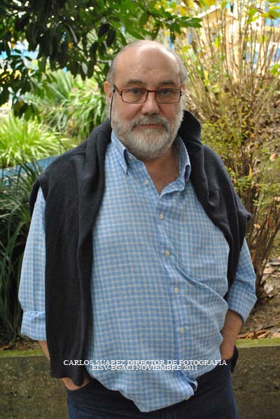 Breve bibliografía:Carlos Suárez nace en Oviedo. Estudió en el Liceo Francés de Madrid y se licenció en Filosofía y Letras y en la Escuela Oficial de Cinematografía. Traductor del frances de numerosas novelas de Georges Simenon, fue promotor de boxeo en Asturias. Es el hermano menor del director de cine Gonzalo Suárez en la que colabora en varias de sus películas. Trabajo como director de fotografía en más de cien películas, entre las que destacan La escopeta nacional, Remando al viento y La vaquilla, y para directores como Gonzalo Suárez, Pilar Miro, Luis García Berlanga o Jaime Chavarri. Creo la productora Dos Ocho Cine, responsable de películas como Makinavaja, el último chorizo, Los porretas y Manolifo Gafotas, entre otras. Director de fotografía también en numerosas series de televisión, es autor de diversos spots de publicidad y tenia proyectado establecer en Llanes una escuela de cine.Debutó como director de cine con el largometraje El jardín secreto en 1984.
